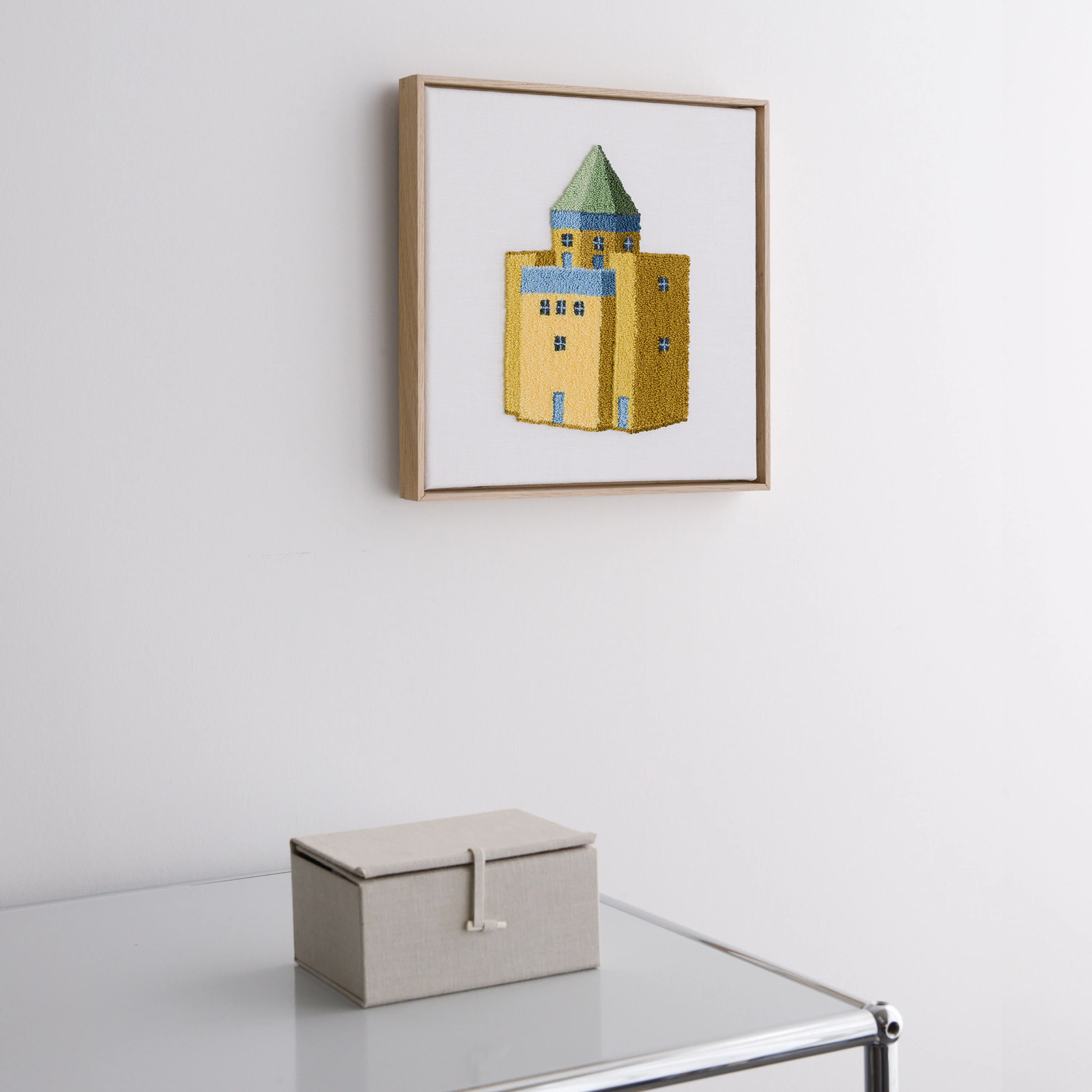 Adrienna Matzeg is working at the intersection of photography, textiles, and product design to create her punch needle embroidery compositions. She is drawn to the narrative quality that both photography and textiles possess, nostalgia being a prominent theme in her practice. Through reducing the subject matter in her work to simplified colours, shapes and fragments she explores how we recall memories, with a specific interest in travel destinations and souvenirs.