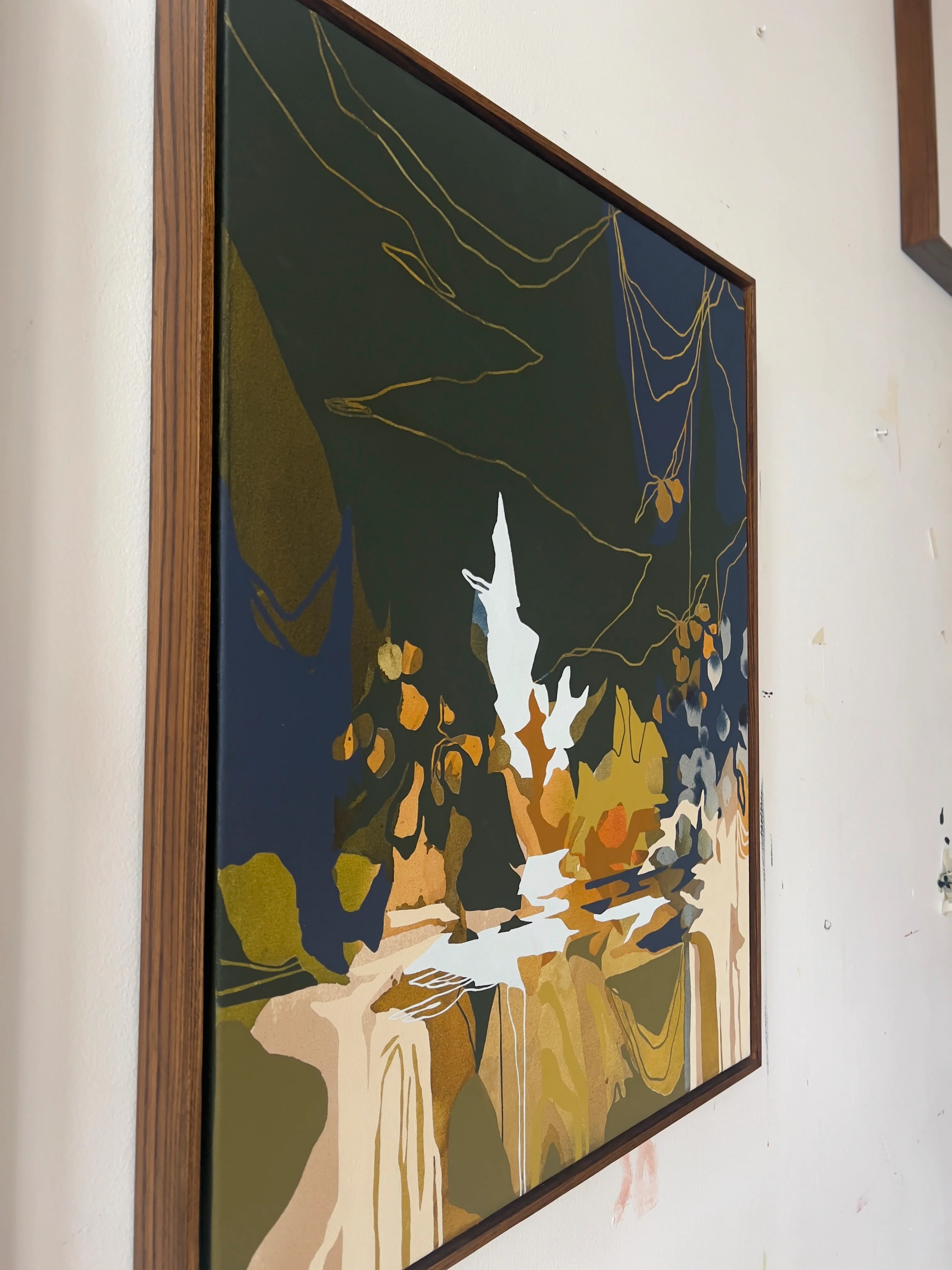 Her paintings embrace this tension, resulting in work that feels raw, atmospheric, and intuitively composed. There’s a quiet confidence in letting go — an openness to letting materials speak for themselves, while still guiding the process with a discerning hand.