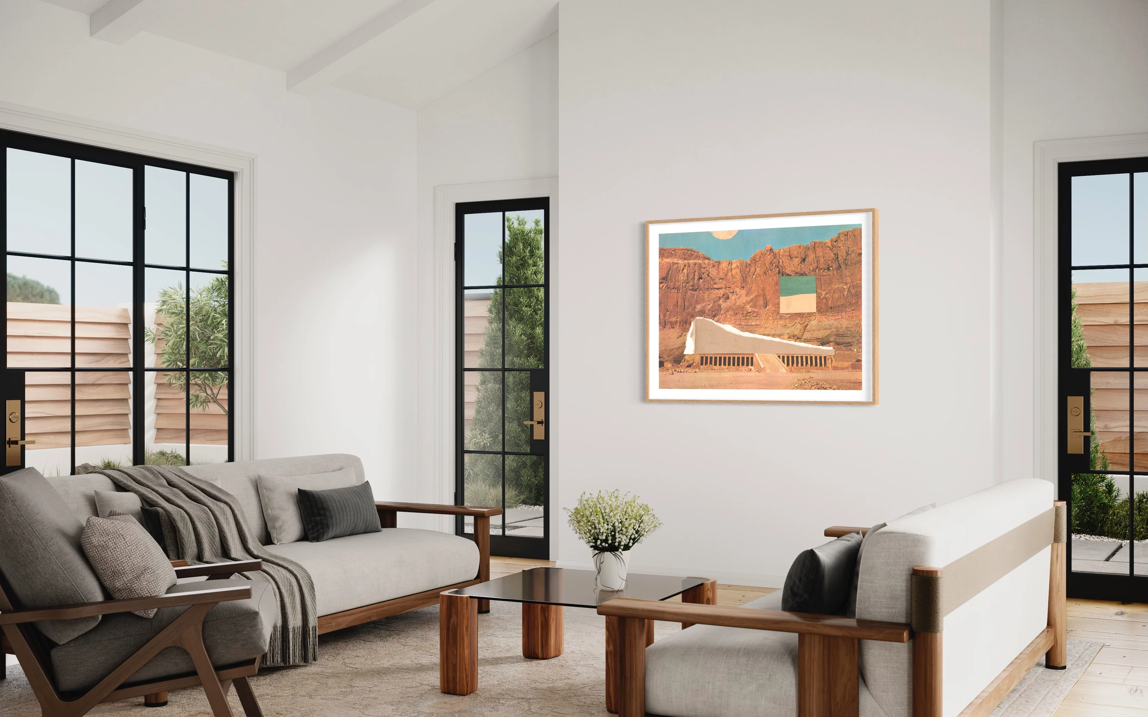 Renske Herder is a multidisciplinary artist and designer born in The Netherlands and based in the Caribbean. Renske’s body of work features mixed media artworks — still life photographs become embellished via her paintbrush. Equal parts serene and eclectic, Renske’s work fuels our inspiration and offers a feeling of repose. Our curator recommends this work in our natural frame to accentuate the organic beauty of the work.